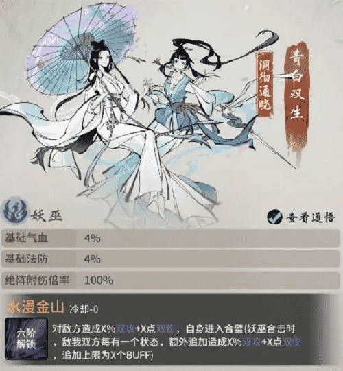 西湖踏春,,,未曾想竟卷入到青白蛇故事中。。。。青蛇与白蛇本是修道有成的小妖,,两人在西湖边上开了间医馆,,,济世救民,,,不料沾惹人世因果,,遭高僧误解。。。。白蛇被镇压于雷峰塔下,,,,侥幸逃脱的青蛇则在三界奔波,,,,只为早日寻得解救白蛇之法。。。。如今千年已过,,高僧云游四海,,,雷峰塔封印松动,,,而青蛇亦寻得强力古宝,,意欲趁此机会解救出姐姐……若仙友有幸与青白双生结识,,即可习得其绝技·水漫金山,,对敌方造成双攻伤害,,,,于修炼大有助益。。。